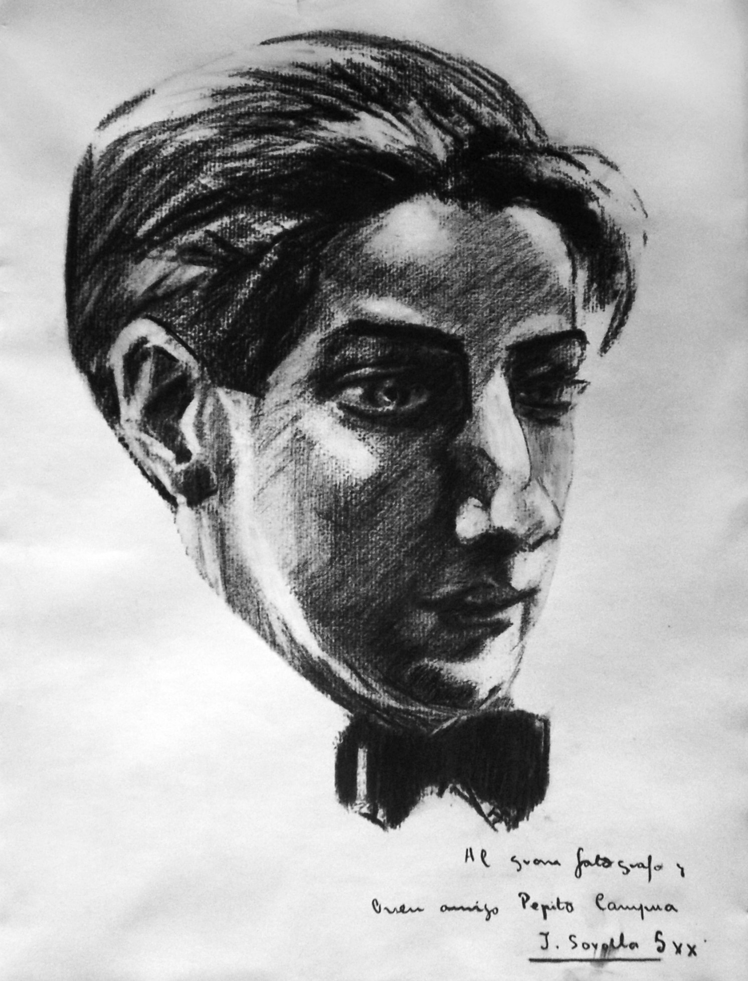 Fruto de esta amistad destaca el retrato a carboncillo atribuido al hijo de Joaquín Sorolla que Pepe Campúa conservó durante décadas colgado en la pared de su estudio y con el que concluimos este artículo, que por su contenido de peso en la vida del fotógrafo incluimos tanto en la categoría de «Biografía» como en la de «Campúa visto por otros».