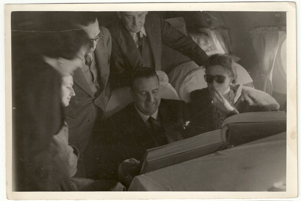 Pepe Campúa retrató algunos momentos del vuelo entre Madrid y Buenos Aires del ministro Martín-Artajo y su comitiva en 1948