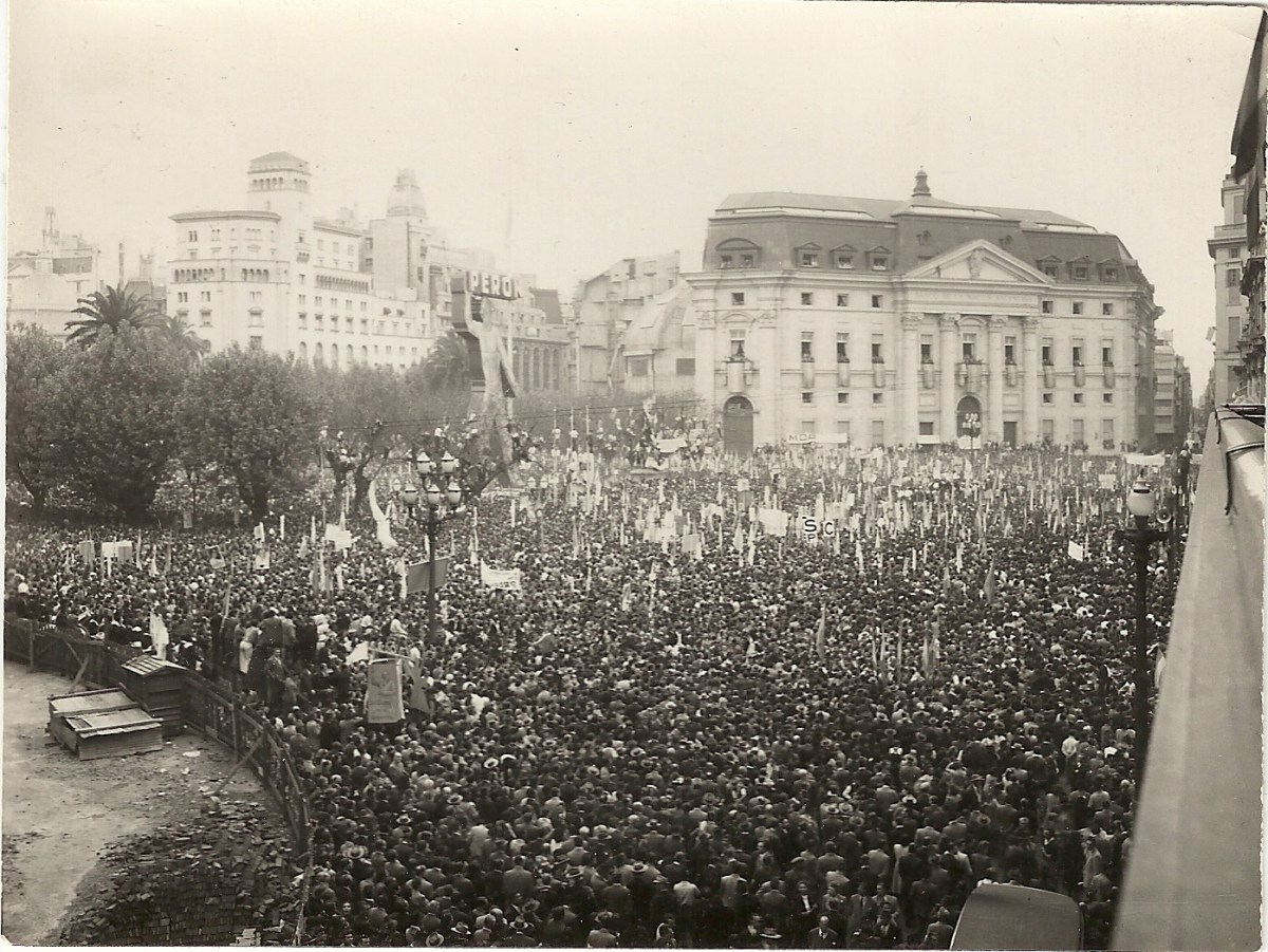 Concentración de las juventudes peronistas en la plaza de Mayo el 17 de octubre de 1948, captada por la cámara de Campúa.