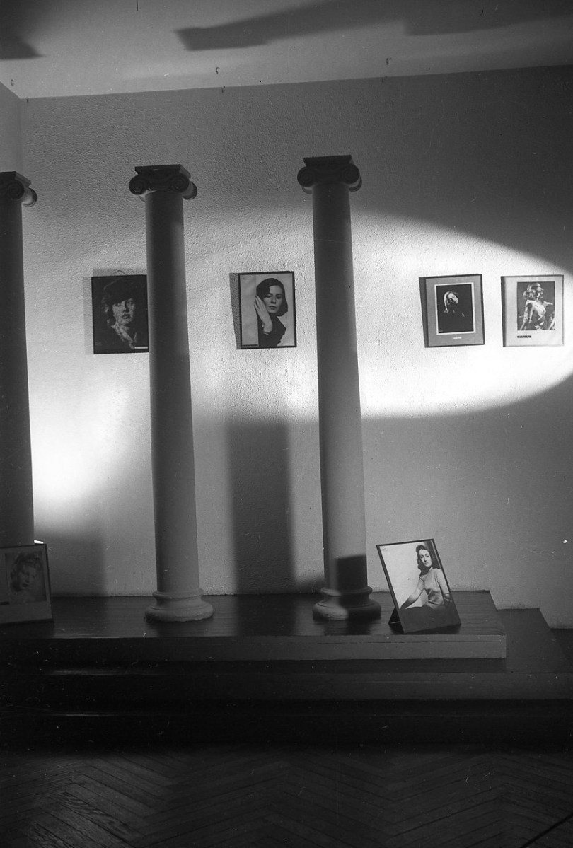 Vista del escenario de columnas del estudio de Campúa, decorado con una selección de las que el fotógrafo consideraba sus mejores imágenes artísticas.