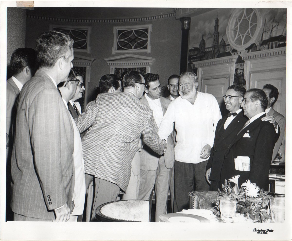 El encuentro de Ernest Hemingway con los fotógrafos que acudieron al Congreso Internacional en La Habana. Pepe Campúa, en el lado derecho de la fotografía, con su periódico en el bolsillo, esperaba a saludar al escritor.