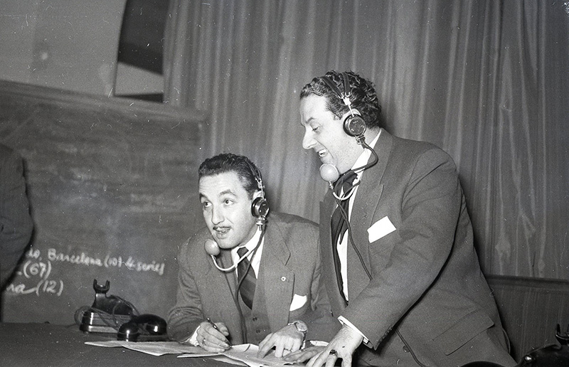 En la Asociación de la prensa dos locutores iban anunciando los números premiados. Imagen de Campúa tomada el 22 de diciembre de 1952