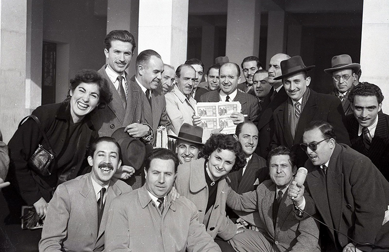 Como sigue siendo tradición, los periodistas acuden en busca de las personas agraciadas por la Lotería de Navidad. Imagen de Campúa tomada el 22 de diciembre de 1952