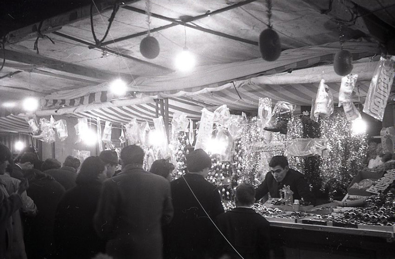 Puesto de objetos navideños en Madrid en 1965