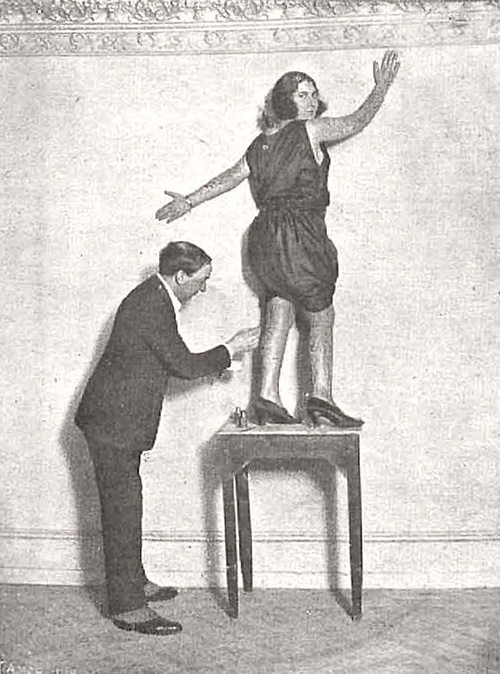 Mariano Benlliure y Tuero, hijo del escultor, retratado por Pepe Campúa. En la imagen publicada en Nuevo Mundo en 1922 un irónico pie de foto afirma: «Mariano Benlliure y Tuero, fatigado por las deliberaciones a que obliga su cargo, descansa poniendo su mano en un tatuaje comenzado por Moya»