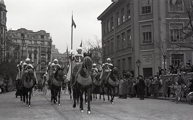 Una sección de la escolta de Franco durante el desfile de San Antón, fotografiados por Campúa en 1955