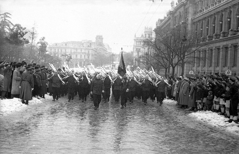 Desfile de una compañía de esquiadores del ejército español, retratado por Campúa el 6 de diciembre de 1950