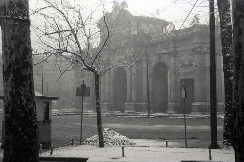 La Puerta de Alcalá retratada desde El Retiro por Campúa en enero de 1952