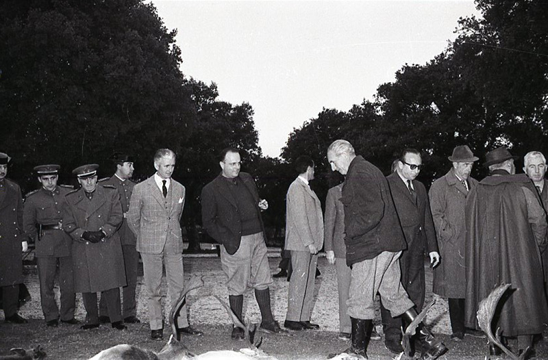 Manuel Fraga tras la cacería en la que participó en febrero de 1964, pasando revista a las piezas derribadas