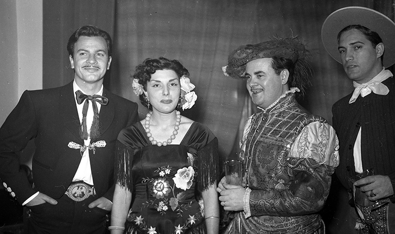 Baile de disfraces de Carnaval organizado por Luis Rubiera a los directores y artistas de la pantalla española el 1 de marzo de 1952, fotografiados por Pepe Campúa