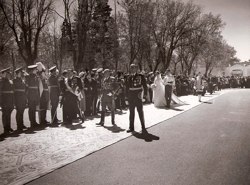 Desfile de los novios y los invitados en el día de la boda de Carmen Franco y el Marqués de Villaverde