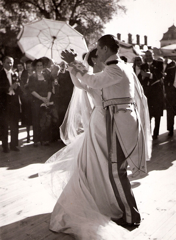 Carmen Franco y el Marqués de Villaverde bailan en el día de su boda