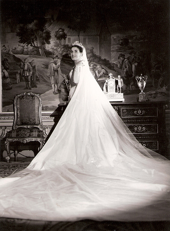 Carmen Franco y Polo posa, en la víspera de su boda, para el reportaje fotográfico concedido en exclusiva a José Demaría Vázquez «Campúa»