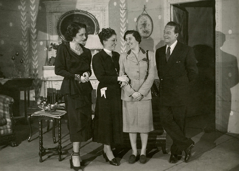 Campúa retrató el estreno de la obra en el Teatro Gran Vía de Madrid, con fotos como esta en la que la autora, Josefina Carabias, posa junto a los actores del montaje.