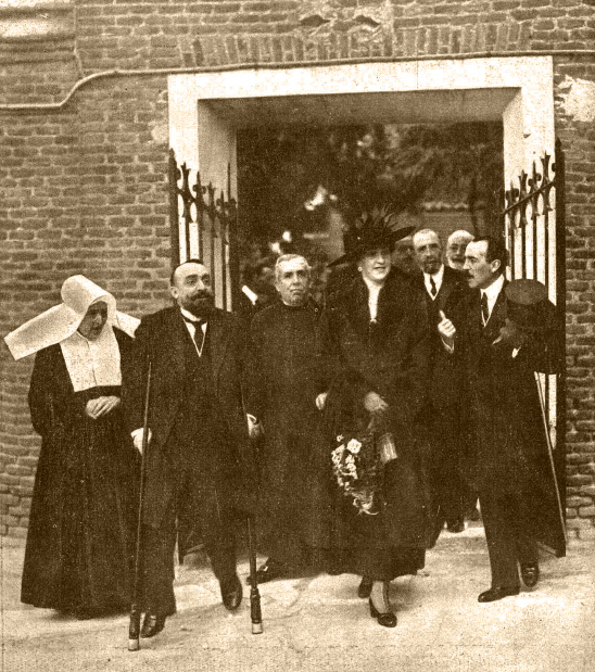 La Reina visita el Asilo de Las Mercedes , foto de Campúa padre publicada en Mundo Gráfico el 1 de noviembre de 1916. El pie original señalaba: S.M. la Reina Victoria visitando el Asilo de Nuestra Señora de las Mercedes, acompañada por la superiora Sor Isabel, el director Sr. La Casa, el presidente de la Diputación, Sr. Díaz Agero y otras distinguidas personas
