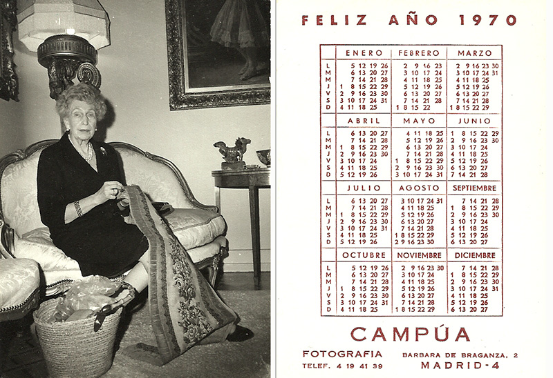 Calendario de 1970 del Estudio Campúa dedicado a la reina Victoria Eugenia, fallecida el año anterior