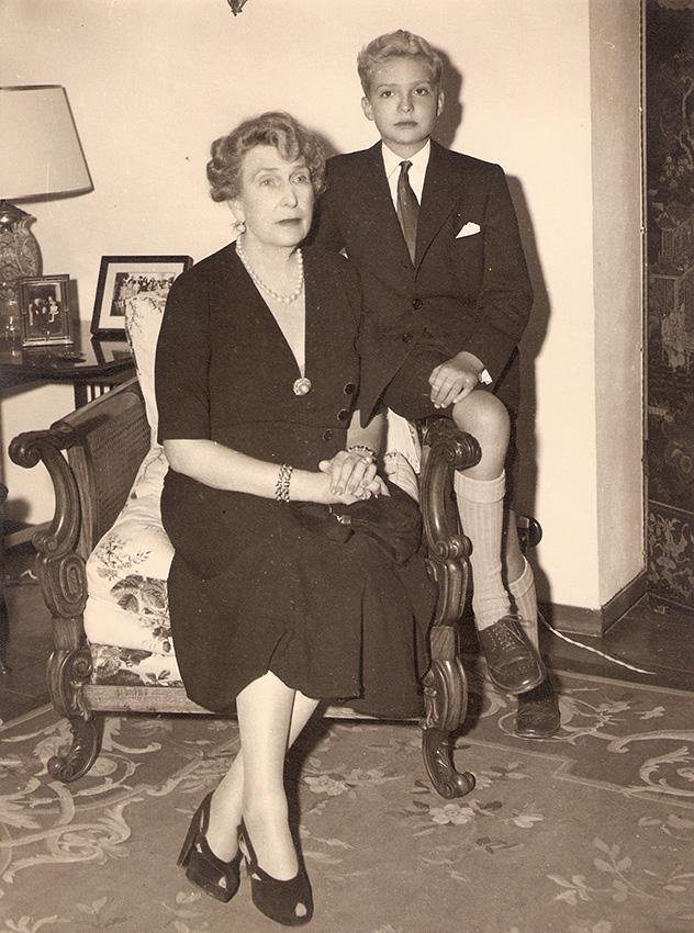 La reina Victoria Eugenia en los años 40 junto al entonces príncipe Juan Carlos, retratados en una visita de Pepe Campúa a Estoril