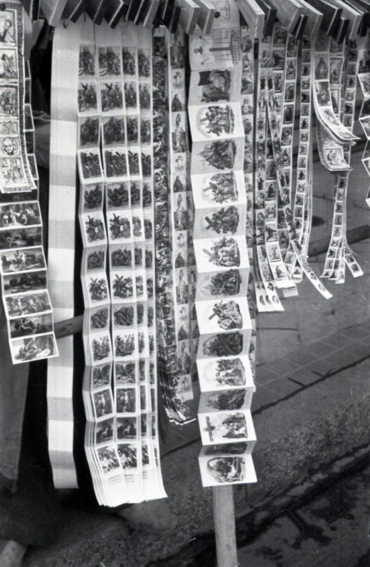 Las aleluyas, con escenas de la Pasión impresas, son una de las tradiciones que no se han conservado en Madrid. Así las captó Campúa en 1952