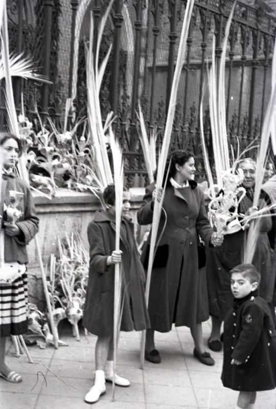 Comprando las palmas en el domingo de ramos de 1954. Foto. Campúa