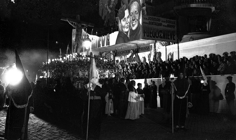 Procesión del Silencio en Madrid, fotografiada por Campúa a su paso por Callao en abril de 1950