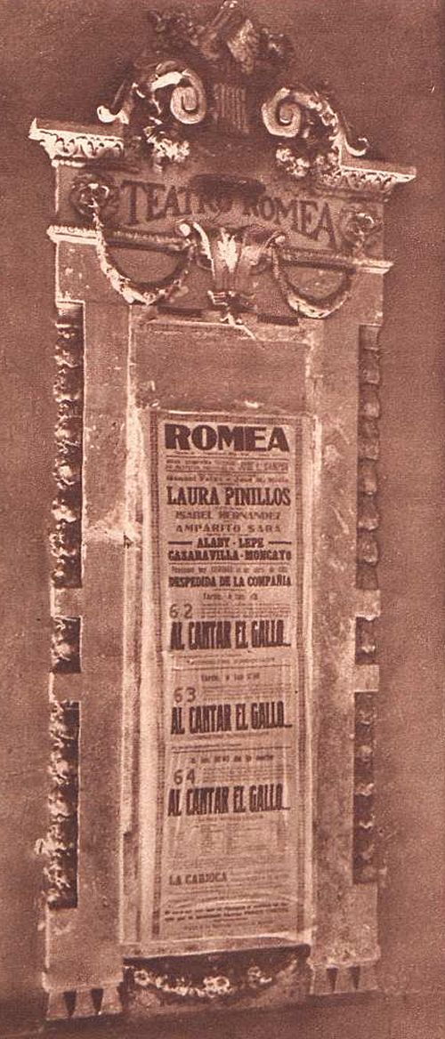 Último cartel del Teatro Romea, publicado con fotografía de Cortés en la revista Crónica el 25 de agosto de 1935