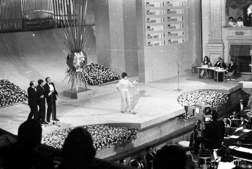 Actuación de Salomé con «Vive Cantando» como representante de España en el Festival de Eurovisión 1969. Foto. Campúa