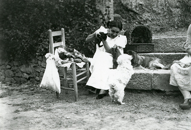 Raquel Meller jugando con unos cachorritos en sus vacaciones en 1921