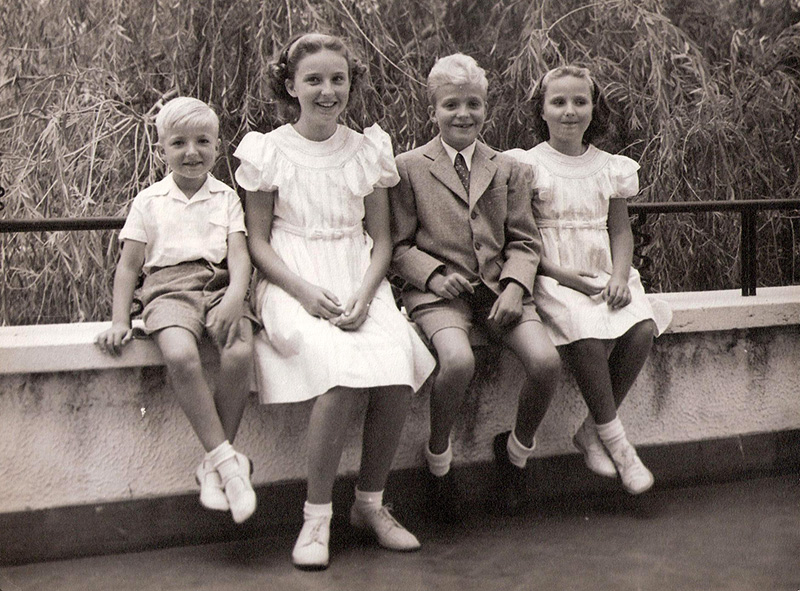 Juan Carlos en Estoril junto a sus tres hermanos. Foto. Campúa