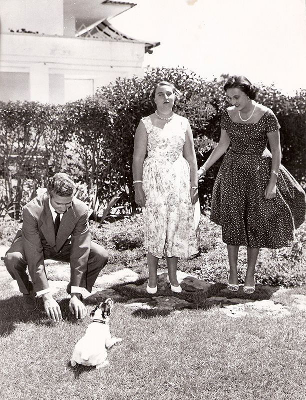Juan Carlos junto a sus hermanas, la infanta Margarita y la infanta Pilar en Estoril. Foto. Campúa