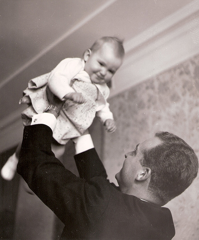 Juan Carlos alza en brazos a su hija la Infanta Elena. Foto. Campúa