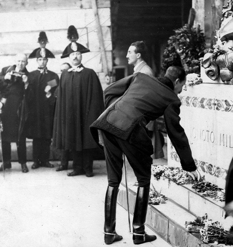 Alfonso XIII fotografiado por Campúa mientras colocaba una corona de laurel en la tumba del Soldado Desconocido.