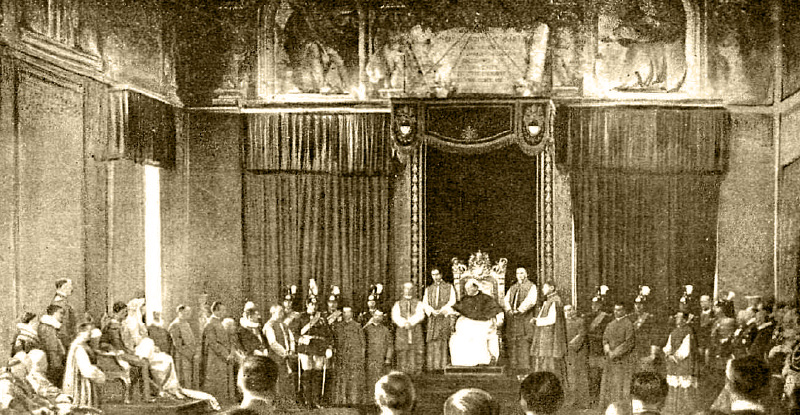 Fotografía de Campúa publicada en La Esfera y Nuevo Mundo de la audiencia del papa Pío XI a los reyes Alfonso XIII y Victoria Eugenia en el Vaticano en 1923.