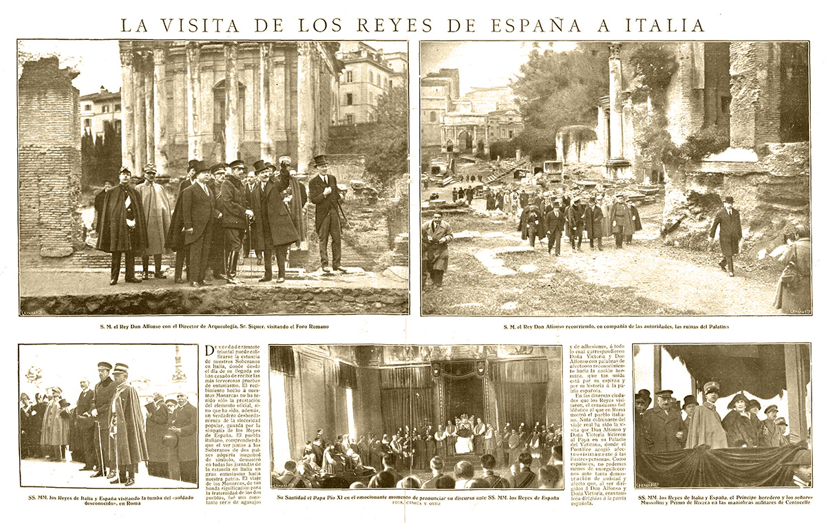 Ese año, entre el 19 y el 28 de noviembre los reyes de España, Alfonso XIII y Victoria Eugenia de Battemberg emprendieron junto al general Miguel Primo de Rivera un viaje a Italia para encontrarse con Víctor Manuel III y su esposa Elena de Montenegro, así como con Benito Mussolini que llevaba poco más de un año como presidente del Consejo de Ministros del gobierno italiano.