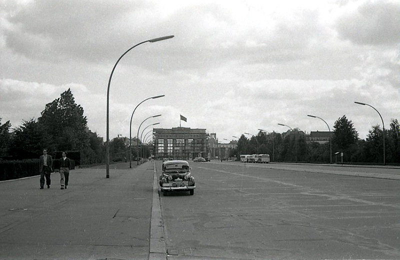 La puerta de Brandenburgo andamiada, fotografiada por Campúa en 1945