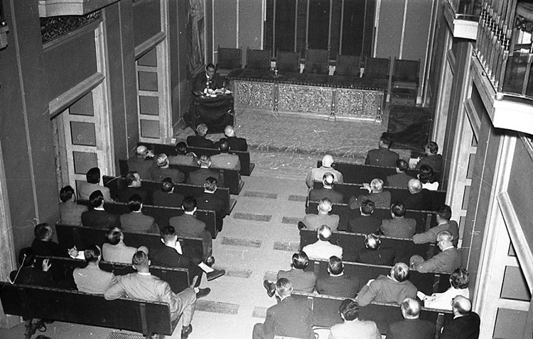 El público asistente a la conferencia de Otto Skorzeny en el Instituto Nacional de Industria. Foto tomada el 19 de marzo de 1958 por Campúa