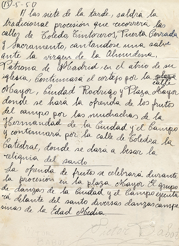 Nota informativa firmada por Víctor Babot con la previsión del recorrido de la procesión de San Isidro
