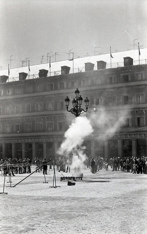 Fuegos diurnos o «mascletá» organizados con motivo de las fiestas de San Isidro en 1969, fotografiados por Campúa
