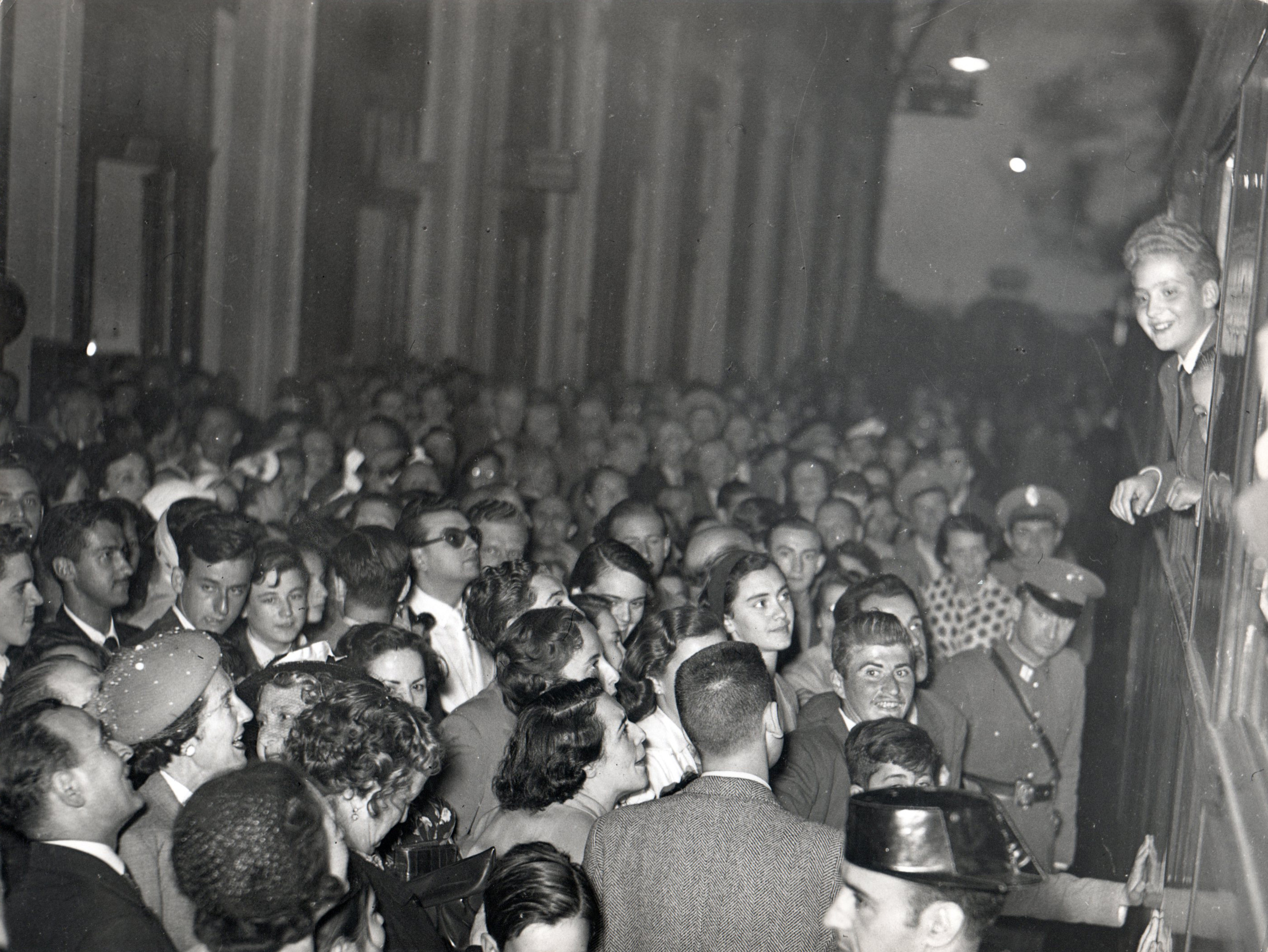 La gente esperando en la estación a Juan Carlos y Alfonso, fotografiados por Campúa