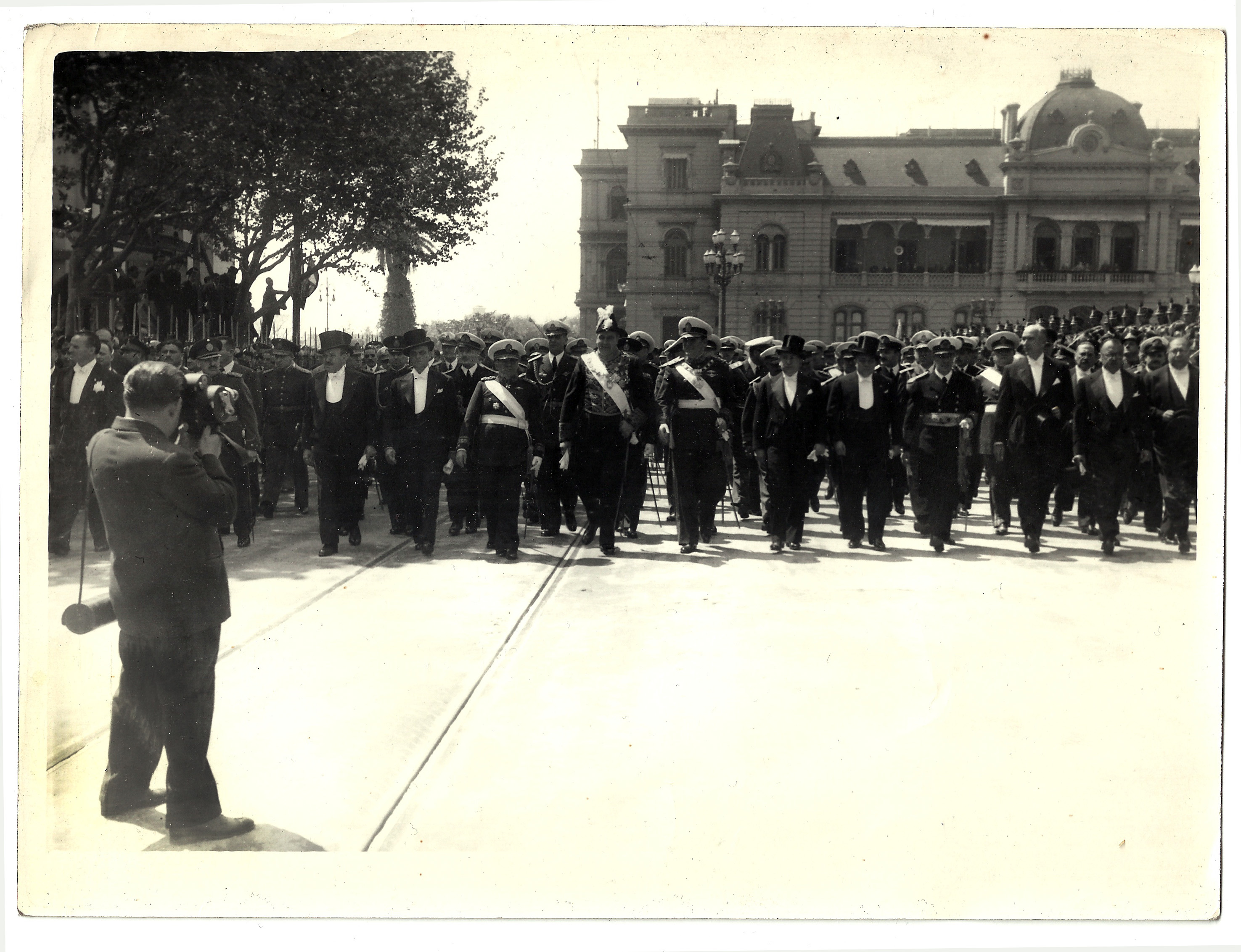 Pepe Campúa rodó con su cámara de cine otros momentos del viaje del ministro Martín-Artajo a Argentina en 1948, como este desfile militar. Se desconoce todavía si esas imágenes en vídeo se conservan en algún archivo público.