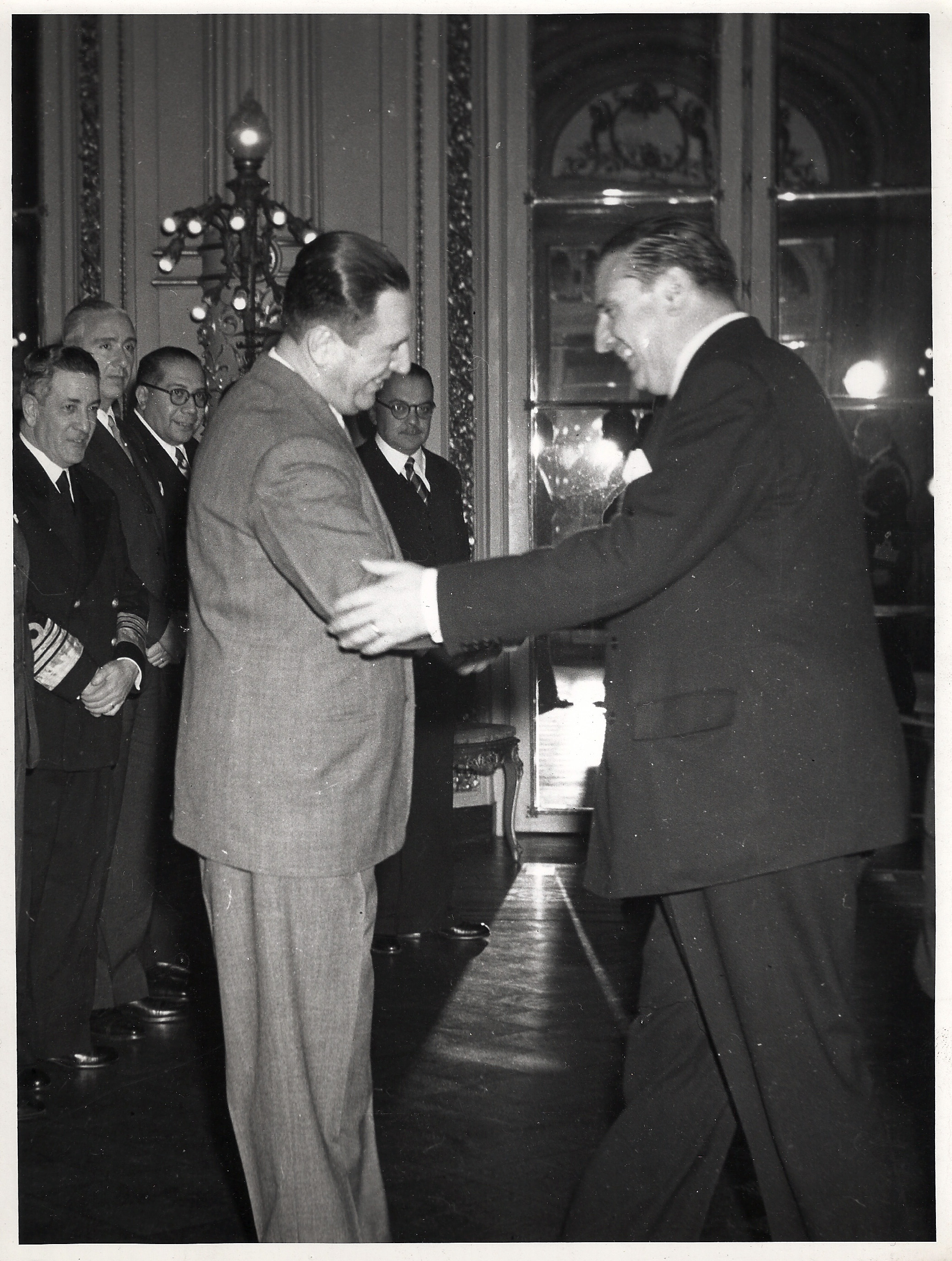 Positivado de época de la recepción que el general Juan Domingo Perón ofreció con motivo de la visita del ministro Martín-Artajo a Argentina.