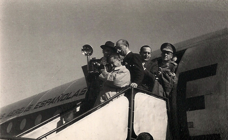 Pepe Campúa filmó con cámara de cine algunos momentos del viaje de Martín-Artajo a Argentina. En este positivado de época aparece filmando el descenso del ministro en el aeropuerto de Buenos Aires.