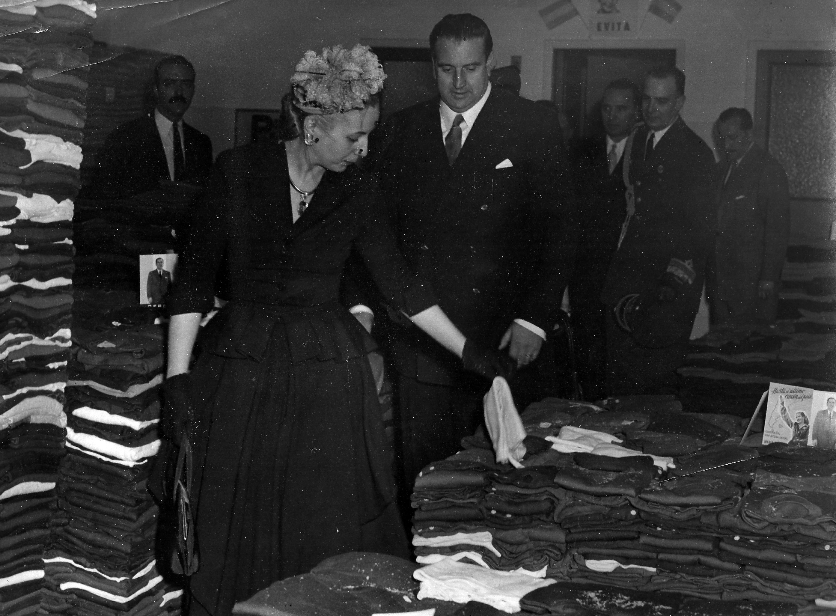 El ministro Martín-Artajo visitó junto con Evita Perón diversas entidades benéficas en Buenos Aires. Como en este instante de la visita, retratado por la cámara de Pepe Campúa.